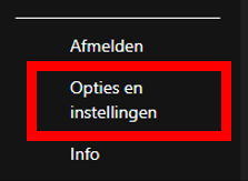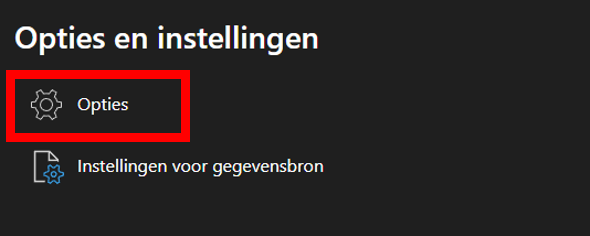 Klik links bovenin het scherm op “bestand”. Vervolgens zie je links onderaan de pagina “opties en instellingen” staan. Klik daarop.